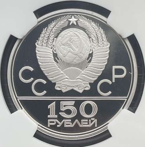 Платиновая монета 150 рублей "Античные колесницы" 1979г. ЛМД в слабе NGC PROOF 69 ULTRA CAMEO